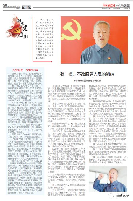 原标题:《回想入党那一刻|魏一海:不改服务人民的初心》