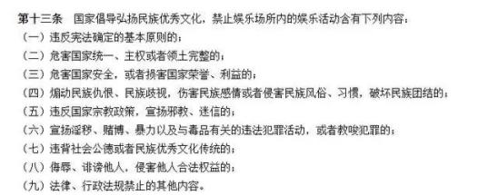 第六条 歌舞娱乐场所播放的卡拉OK音乐不得含有《娱乐场所管理条例》第十三条禁止内容: