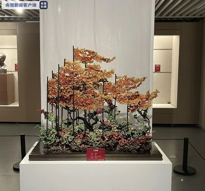 本次展览主办方从中共一大纪念馆、上海中国画院馆藏以及沪上著名艺术家工作室中精心遴选20余件优秀艺术作品进行展出,其中包括著名雕塑家朱炳仁创作的铜雕《红旗颂》,该作品运用熔铜技艺塑造了飘扬的旗帜和烂漫的山花,礼赞党的百年华诞,展期至2021年10月31日。