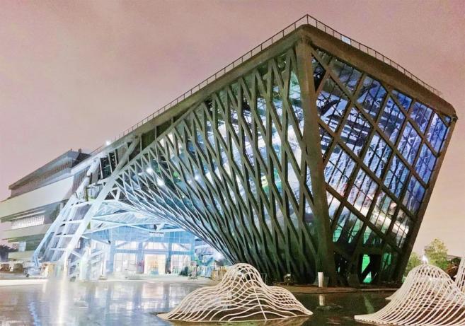 这座最近很火的新博物馆,像平地上一艘起航的大船,周围的白色装置,宛如被激起的海浪。单看外表已经被它锁得死死的。