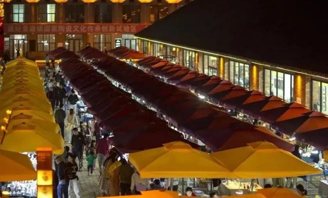 在景德镇市珠山区,东西走向的纵轴线上,雕塑瓷厂乐天陶艺集市、陶溪川青年创意集市、御窑厂古街也成为创意文化摊点的聚集地。另外,南北方向也形成了一条创意集市带,九集小镇的餐饮和娱乐消费发达,青年创意集市在这里见缝插针;依托于陶瓷大学的青年艺术家人才资源,陶艺街连接陶阳新村的跳蚤市场创意集市早就有了一定的规模,许多摆摊的都是老面孔;再往南边走,三宝国际瓷谷文创中心到三宝蓬艺术聚落之间,三宝夜市方兴未艾,也吸引了许多游客和消费者的目光。