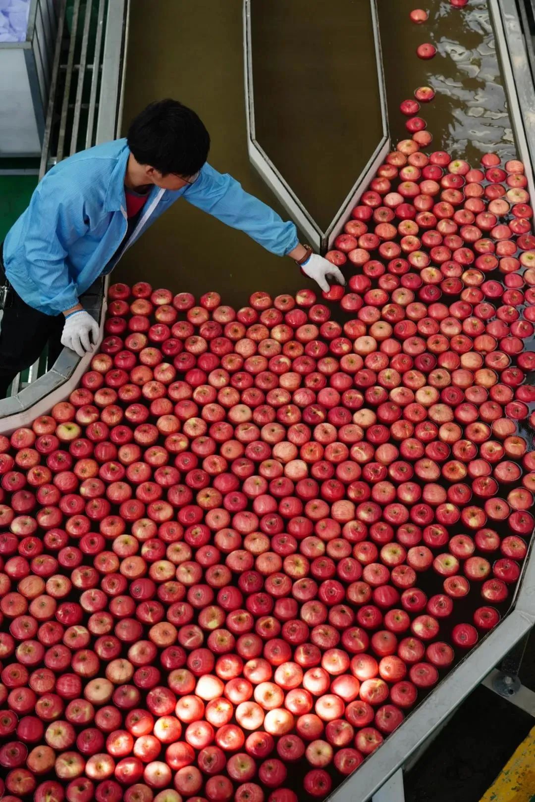 工人在延安市洛川县一公司车间的智能分选线上工作。新华社记者 邵瑞 摄
