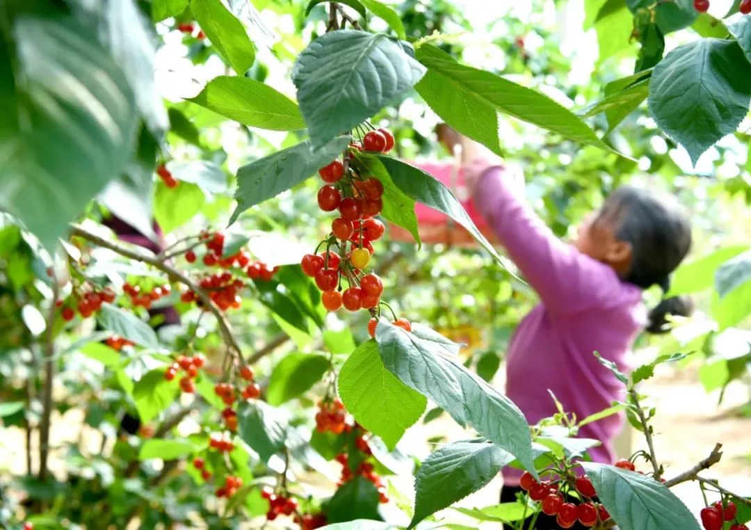 山东省枣庄市水泉镇长城村农民在采摘樱桃。新华社记者 刘明祥 摄