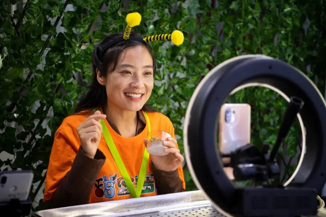 参展商在第七届中国(山西)特色农产品交易博览会现场直播带货。新华社记者 杨晨光 摄