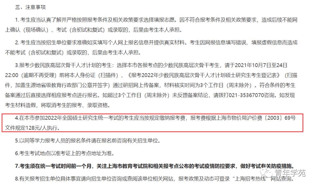 在上海市参加2022年全国硕士研究生统一考试的考生应当按规定缴纳报考费,报考费根据上海市物价局沪价费〔2003〕69号文件规定128元/人执行。
