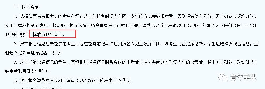 收费标准执行《陕西省物价局陕西省财政厅关于调整部分教育考试项目收费标准的复函》(陕价服函〔2018〕164号)规定,标准为150元/人。