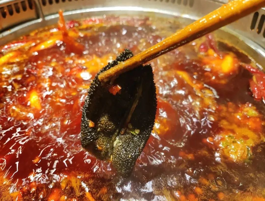 它的锅底是那种老火锅的传统手艺(也有的网友说是老油),食材在锅底中久汤不失味,最招牌的菜,就是放在店名里的现划鳝鱼。