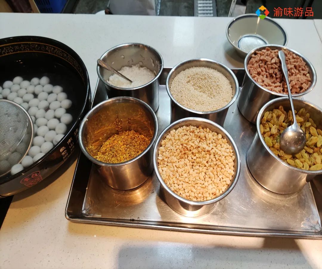最主要的是,他家门口就有免费的冰汤圆,糖做的冰沙,包了馅的汤圆,撒上桂花、山楂、花生碎、葡萄干,味道一点也不比外面差,想吃多少碗都可以。
