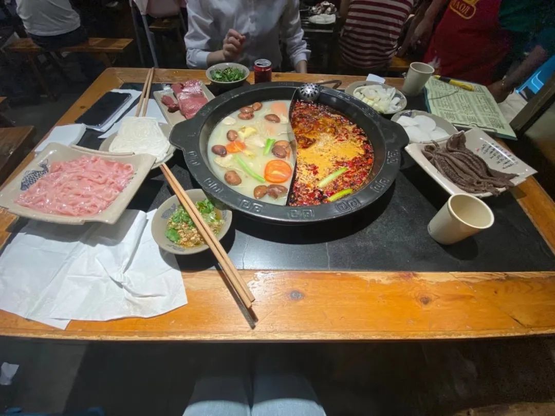真的服气,重庆是怎么能把火锅搞的这么好吃的,完全跟我在北京吃的,不一样。馆子里到处都是本地人在吃饭,江湖氛围感十足。