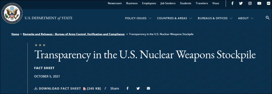 原标题:《时隔近4年,美国公布核弹头总数》