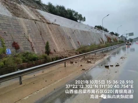 受连续降雨影响,截至2021年10月5日11时30分,山西高速交警四支队辖区目前有边坡塌方、路基塌陷共3处,具体如下: