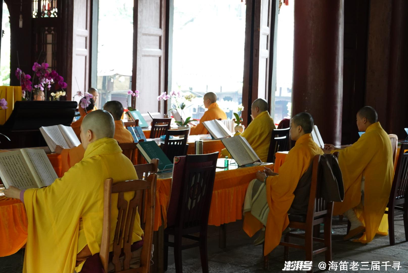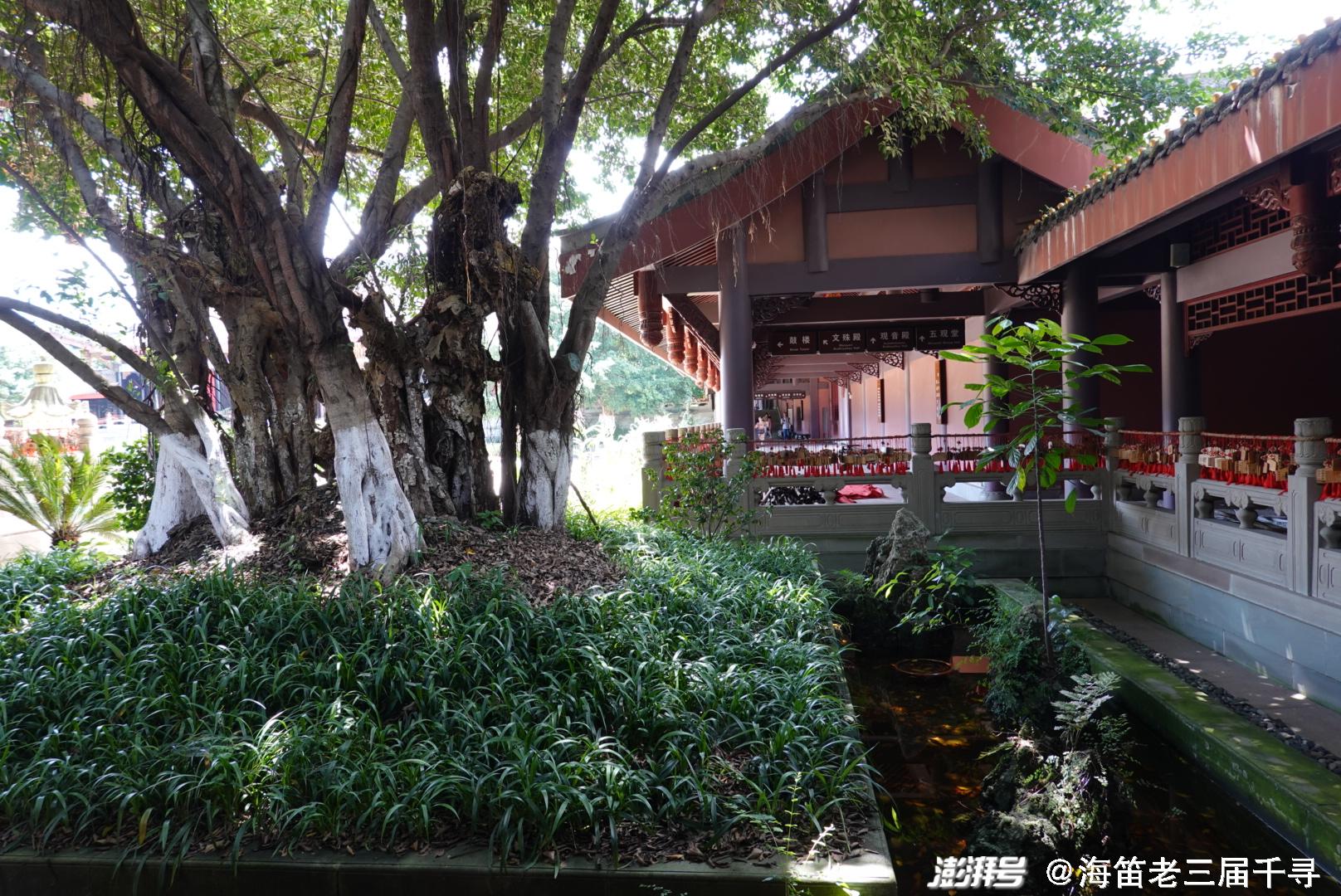 由于禅院太大,殿堂太多,我们只能在殿堂间游走,如同进入迷宫。这里的建筑如同国家的皇家园林,充分体现了中国古代园林的独特风格和高超的造园艺术,彰显了中华民族和宗教的文化追求。藏经阁后的大光明山,是禅院的制高点,山丘凸凹有致,石径弯转入林,一种绽放灼灼红花的象牙红树在青苍秀美的林木中显得分外夺目,给色调偏冷的殿堂区带来暖的色调。围墙廊苑中,随处都能看到叫不上名字的奇花异卉,有的含苞凝蕊,有的暗香浮动,有的花朵盛开,尽显红飞翠舞之态。
