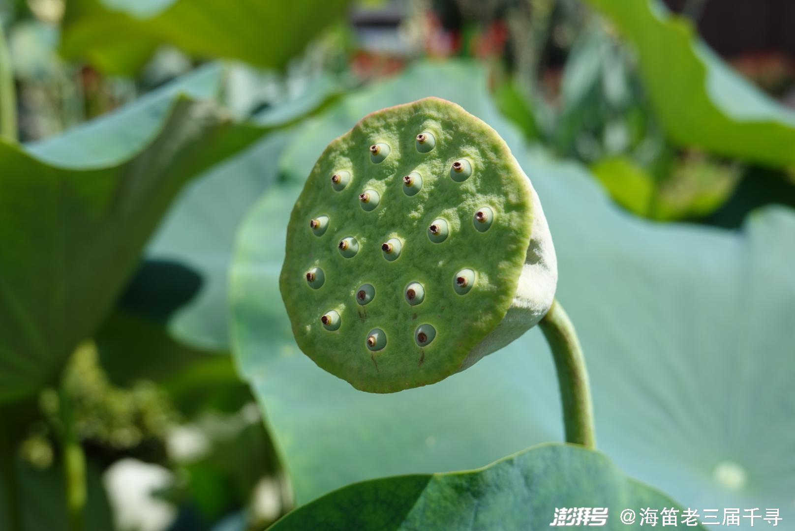 我们错过了荷花的花期,绕放生池而行,还见零星的荷花和莲蓬相映。妙觉池边的丹桂、金桂、银桂、还是雪桂已有了花蕾,正孕育它们的清香淡雅。寺院建筑披金镀银倒影在池中,水天相映不像人间。
