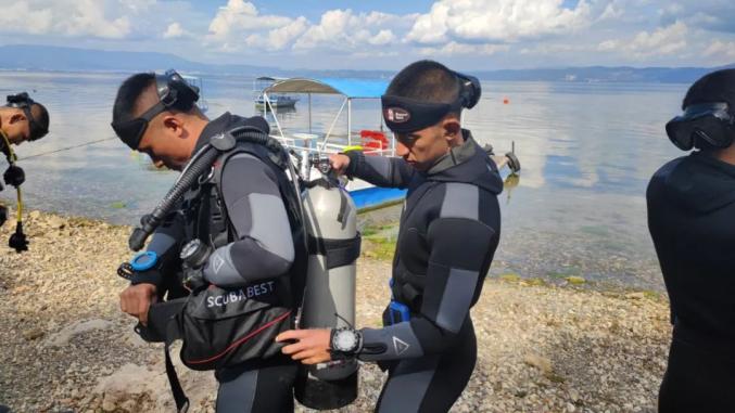 此次培训,既是做好抗洪抢险的现实需要,也是加快队伍“水上力量”建设的迫切要求。总队邀请瑞思邦安(上海)救援安全设备有限责任公司依托云南抚仙湖基地,围绕潜水相关技巧和突发事故处置等要点为指战员开展培训。救援培训共分三个阶段进行,第一阶段主要完成潜水基础理论及技术的学习,使指战员由不具备潜水技能到能以小组为单位制定潜水计划并按照计划完成潜水活动。第二阶段将强化指战员的潜水技能及团队技能,使队员能采用高效、合理、安全的方式管理和规划潜水行动,并执行潜水搜索和救援任务。第三阶段将采用国际通行的公共安全潜水标准,使指战员由普通潜水员转变为能进行水下捞救作业的公共安全潜水员。国庆期间,总队齐兴彬总队长、林洪友副总队长先后前往潜水救援培训基地检查指导。齐总队长还实地参与潜水救援训练,与队员交流心得体会,鼓励大家要善于研究和总结,将潜水救援科目作为一项硬骨头啃下来,为总队综合救援能力提升添砖加瓦。