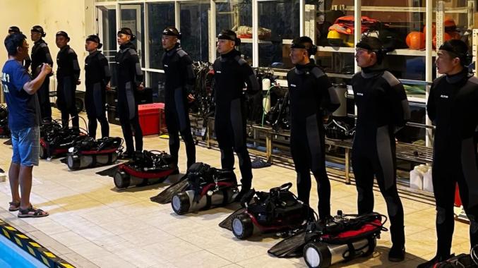 培训期间参训指战员始终牢记各级领导嘱托,严格落实关于队伍管理、训练安全、疫情防控各项要求,始终坚持人员管理、业务培训同步开展,真正做到了教育、训练两不误。队员们采取“白+黑”的训练模式,白天实操实训,利用晚上休息时间做习题,巩固潜水理论,探讨训练中存在不足,及时提出整改意见,完善方案预案,在探讨中提高理论水平、在实践中改进操作方法,营造出“比、学、赶、超”的浓厚氛围。参训指战员还自行组织开展体能训练,巩固体能基础,为年终考核养力蓄锐。