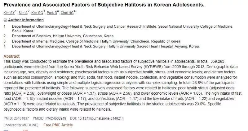 有研究显示,韩国青少年口臭患病率为23.6%,在日本有超过20%的人患有口臭,我国普通人群口臭患病率为27.5%。