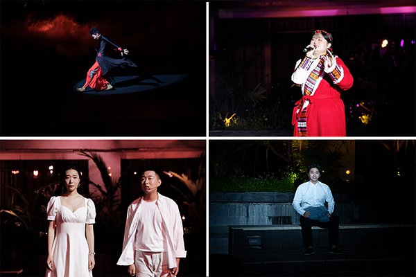 演出以“海南十大当代建筑之一”的书山馆中庭为实景台,利用异化空间布局和建筑的玻璃幕墙设计,结合绿色动态景观内外渗透的特点,让《诗经》里“蒹葭苍苍”“在水一方” 的诗境画意变为眼前真实可触的演出场景。同时,融合新颖的沉浸式舞台表演形式,通过原创故事和经典文学作品的有机结合,讲述跨越千年的家国情,以“小家”温暖感知“大家”情怀,给现场观众带来了一场视听盛宴。