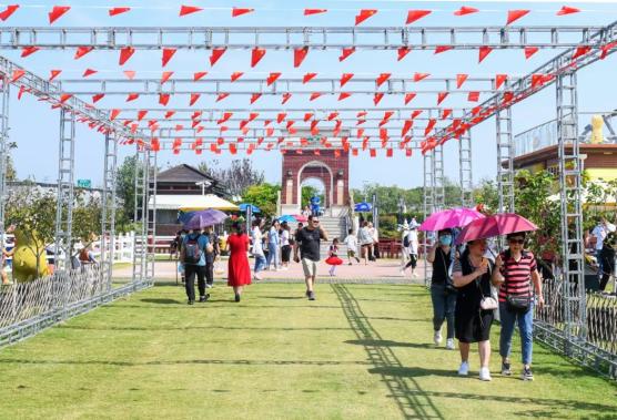 花开海上生态园举办第五届格桑花节,格桑花、向日葵、地肤、醉蝶花等秋季草花进入最佳观赏期,市民游客纷纷前来拍照打卡。枫泾古镇推出“艺造古镇”活动,7件装置艺术分布在枫泾各个角落,为传统景点“解锁”新的打卡方式,波兰倒置屋颠倒人生的独特体验、中国农民画村互动体验也受到了游客的青睐。