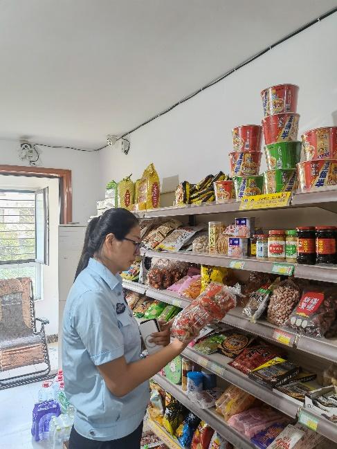 北姜社区网格员由立霞对辖区内的超市展开走访巡查,重点查看经营商户证照是否齐全、健康证是否在有效期内、有无销售过期食品及“三无”食品等方面,积极向经营店铺负责人与周边居民开展食品安全宣传解读,增强居民对食品安全的重视程度,提高经营者的法律意识、责任意识,共同为社区食品安全贡献力量。