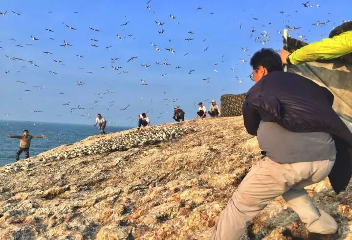 从象山县龙洞码头登船,经过70分钟航行,抵达韭山列岛的中铁镦屿。中华凤头燕鸥夏季就在这里栖息繁育。一上岛,此起彼伏的鸟叫声充斥在耳畔。翻越一段坡地,到达小岛另一侧,可以看到中华凤头燕鸥混杂在几千只大凤头燕鸥中,群起群落,场面壮观。