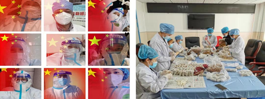 “谓我不愧君,青鸟明丹心”,道里卫健人有着倾情为民的赤子之心。10月1日,举国欢庆的日子,道里卫健系统的医务工作者们在第五轮全员核酸检测的岗位上与祖国同庆,无须命令,无须召唤,1.5万医务人员即刻参战,用实际行动祝福伟大祖国生日快乐!“干杯!国庆节快乐!”驻守在香格里拉酒店隔离点的组工干部史哲将杯中“药”一饮而尽,他喝的正是区卫健局统筹全区中药资源,以国家推荐预防处方清肺排毒汤为基础方,为隔离点煎煮、配送的中药汤剂。自本轮疫情发生以来,区卫建局已经为全区隔离宾馆配送中药汤剂3万余袋、代茶饮1500余包、香囊600多个,指导集中隔离人员和隔离点工作人员五千余人服用预防性中药。“喝中药、挂香囊,新冠病毒无处藏!”已成为集中隔离点中口口相传的防疫秘诀。一袋袋温热的汤药,既暖了隔离人员的胃,更暖了人民群众的心。