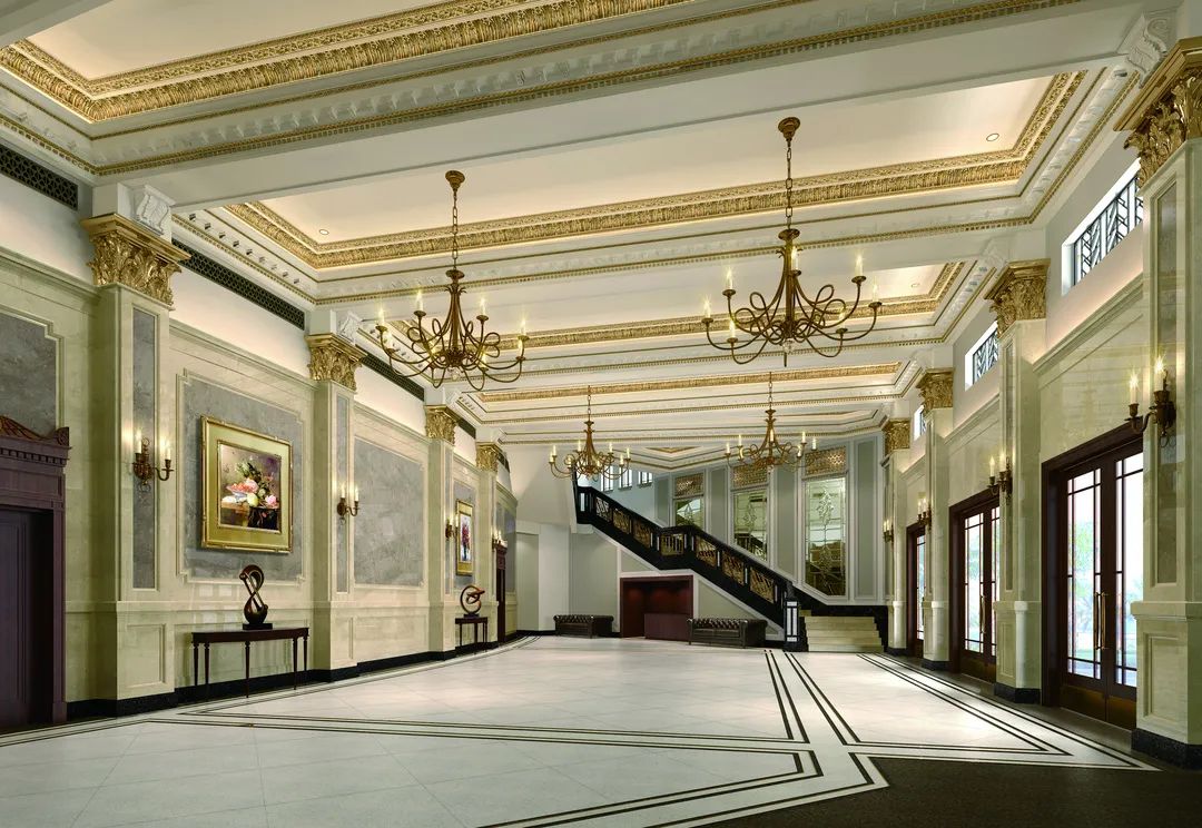 兰心大戏院是上海开埠至今历史最久的剧场之一,是上海乃至中国现代戏剧的起点。兰心大戏院外貌为意大利文艺复兴府邸风格,主立面位于茂名南路和长乐路的转角处,剧院主立面二层有三个半圆拱形落地式长窗,窗外有花瓶式栏杆的装饰性阳台,外墙使用褐色泰山拉毛面砖,转角处由齿形状假石封边。