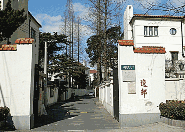 淮海中路1610弄(逸村),建于1942年,由华业工程股份有限公司设计,远东公司建造,占地面积4983平方米,为西班牙式花园住宅群。逸村八栋房屋整体风格接近,这些小楼坐北朝南,均为二、三层,都带有一方精巧的小花园。