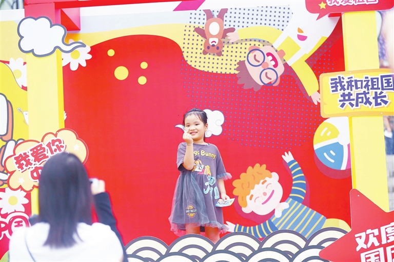 红红火火!10月6日,家长带着孩子在三亚南山文化旅游区游览、拍照。袁永东 摄