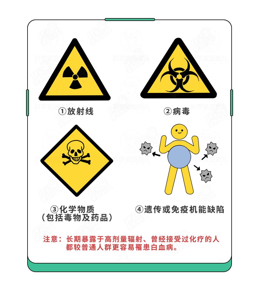 目前临床发现白血病的病因除了长期接触劣质装修材料外,还包括: