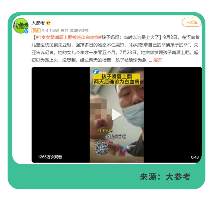 之前也有位1岁女宝宝嘴唇上翻被查出白血病,家长当时以为是娃上火了!