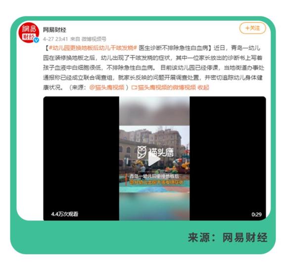 曾有相关报道:某幼儿园更换底板后幼儿干咳发烧,医生诊断不排除急性白血病。发现后该幼儿园也进行了停课调查。