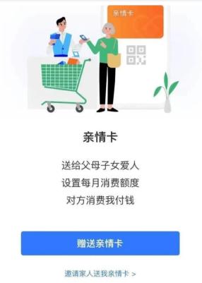 “亲情卡”的核心功能就是,自己为指定人的消费买单。当其在交易时选择由“亲情卡”进行支付,且支付金额在自己设置的额度之内,则系统将按照自己设置的支付顺序完成亲情号支付,即由自己出资为用款人的交易进行付款。