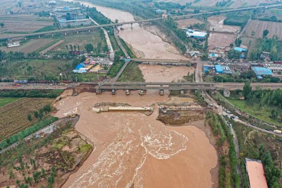 山西晋中:南同蒲线昌源河大桥桥台被冲垮,铁路双向中断