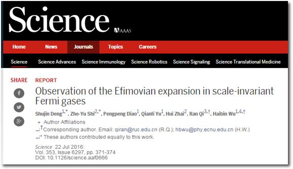 ▲ 邓书金在强关联超冷费米气体动力学研究成果发表在 Science上