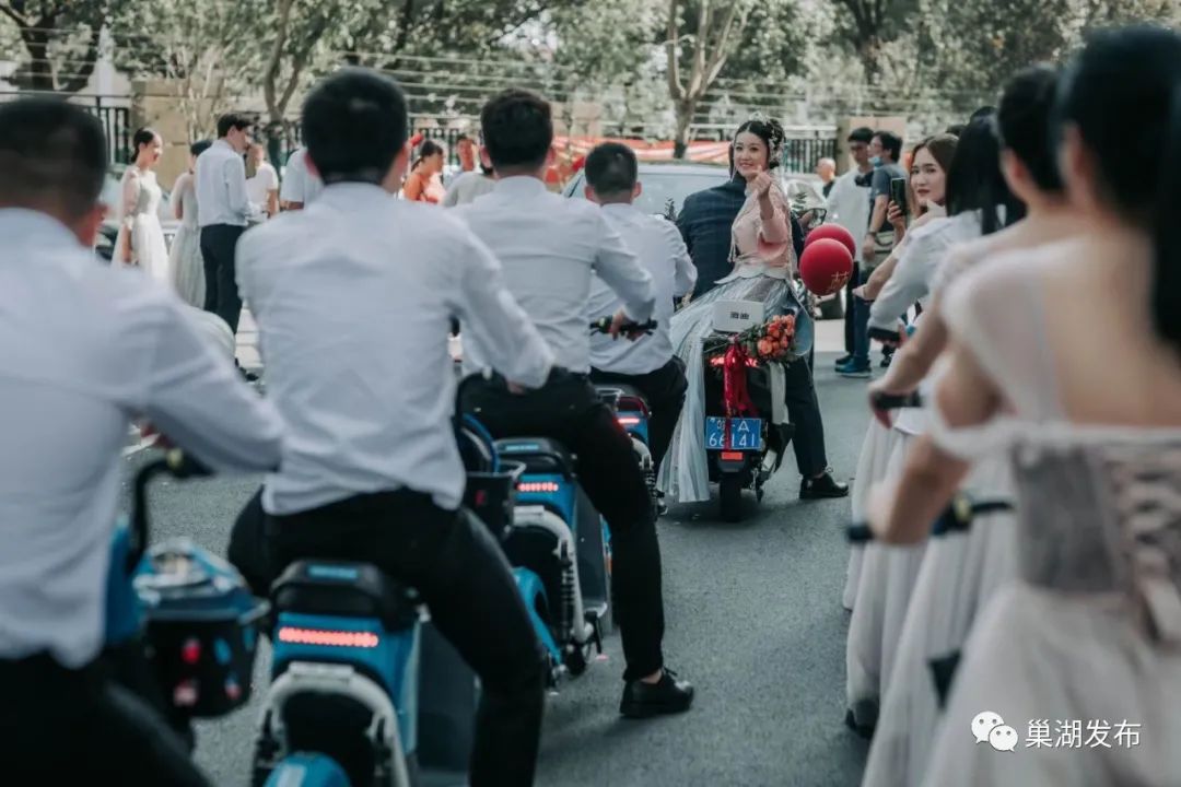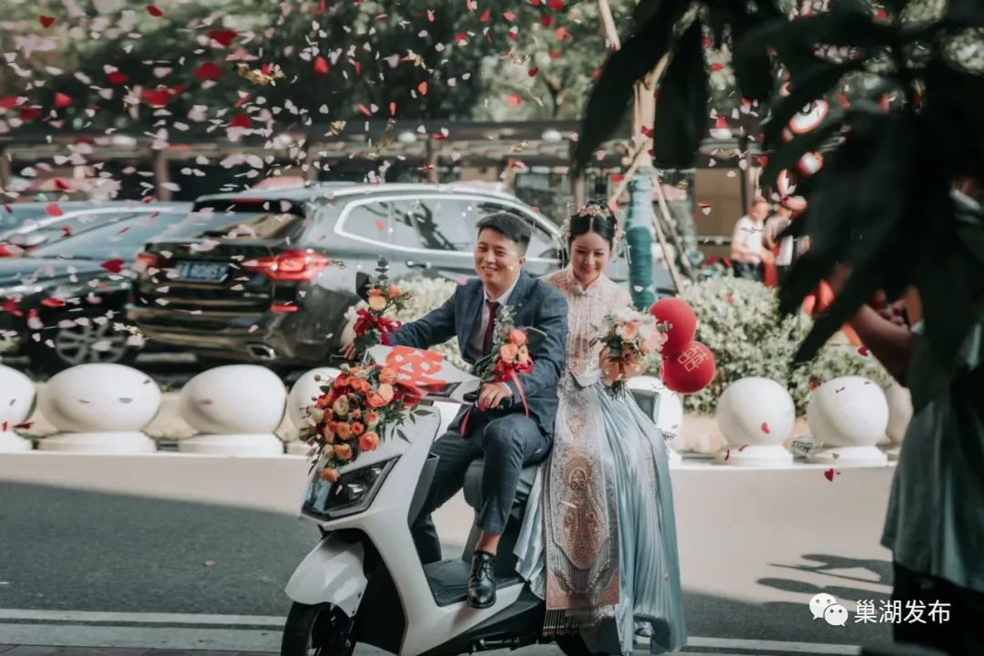 近年来,巢湖市在全市范围内深入推进移风易俗工作。提倡操办婚事等喜庆事宜的庆祝活动经济从简、文明理性,树立文明节俭、个性现代的文明健康新风。本次这对新人采取该迎亲方式也为树立喜事新办新型消费观树立良好典范。