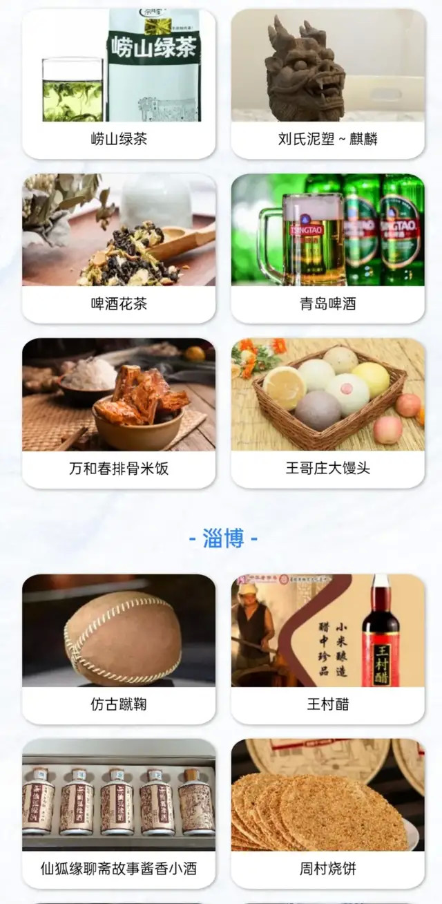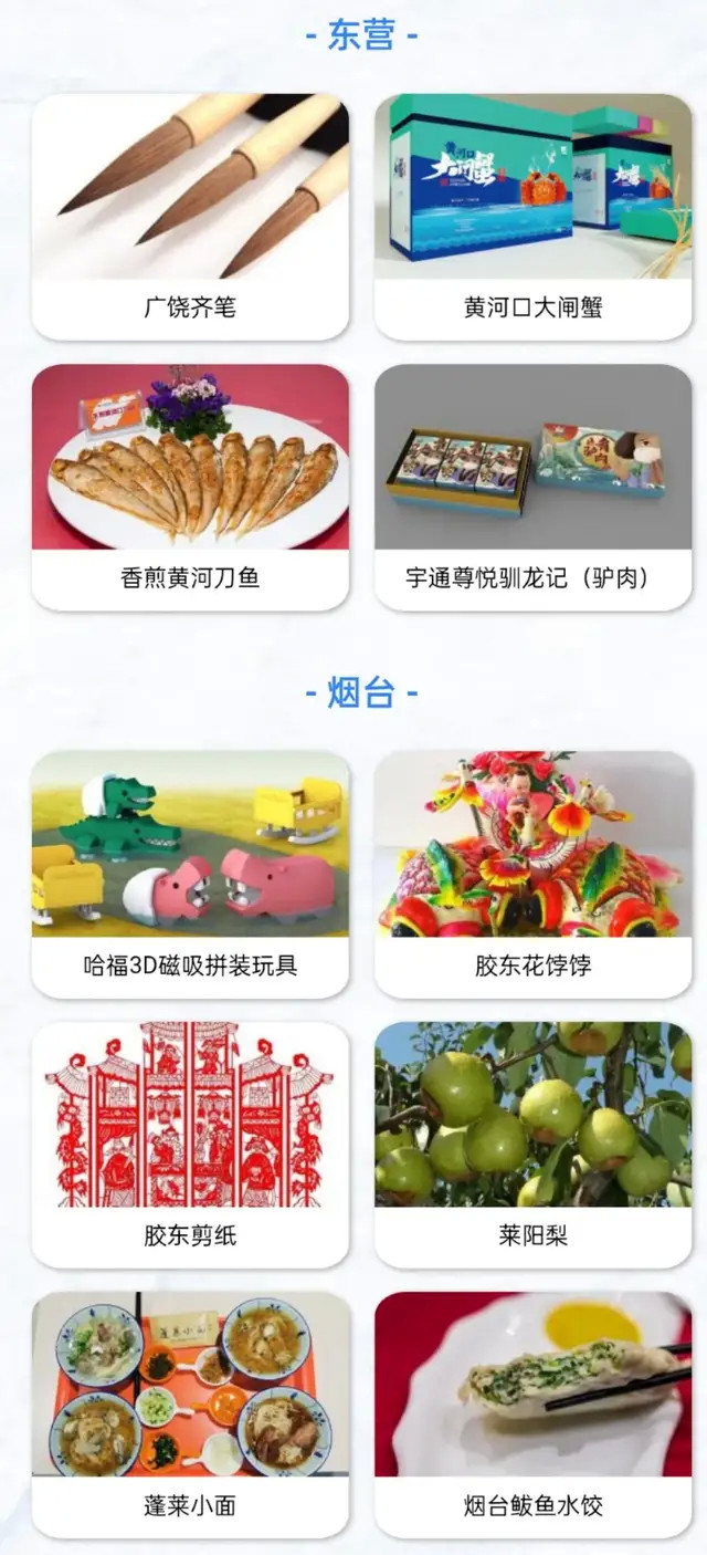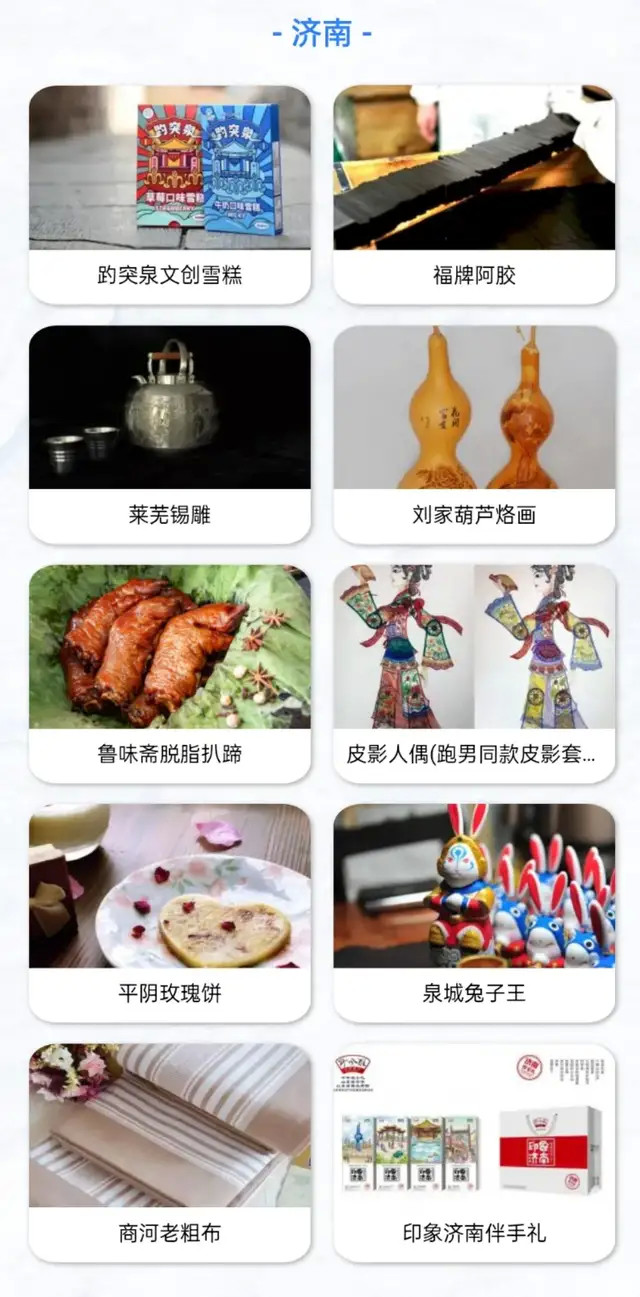 100个网红好物除了泰山皮影、东阿阿胶、烟台剪纸等传统非遗,也有趵突泉文创雪糕等文创商品,还有沾化冬枣、德州扒鸡等当地特产。