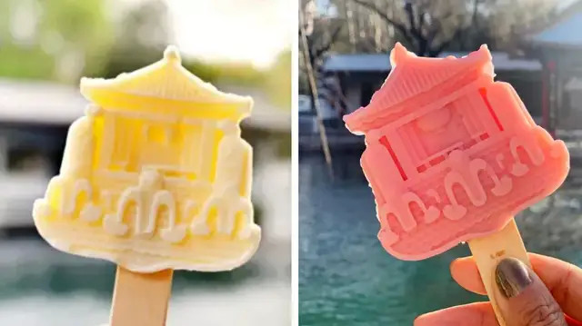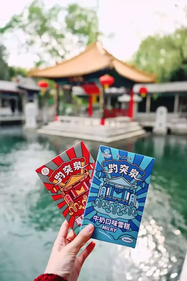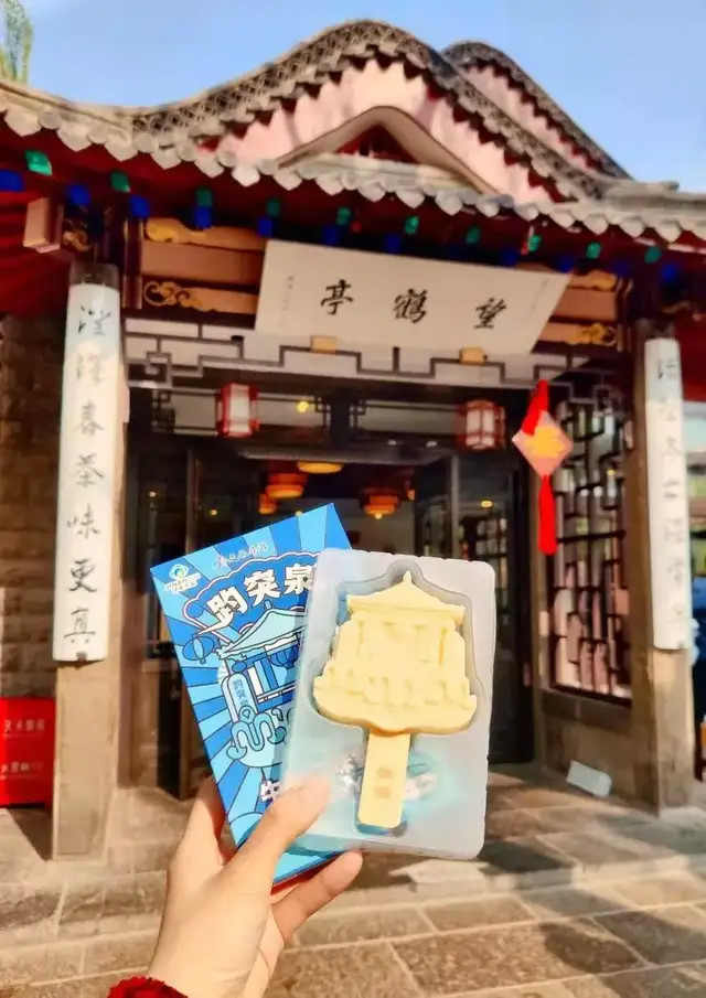 雪糕上有趵突泉的三股水,还有观澜亭以及两边的两个御碑,左边的御碑写着第一泉,右边的御碑写着趵突泉。外表精致,吃起来也甜而不腻、味道浓郁,举起雪糕与趵突泉合影“打卡”,舌尖上的“趵突泉”,试问谁能不爱呢?