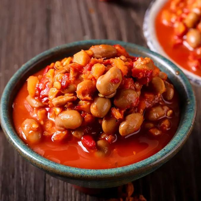 水豆豉是山乡人家的“当家腌辣”,以大豆(黄豆或黑豆)蒸煮发酵后加入姜丝、辣椒面等香辣料腌渍而成。咸丰普通家庭亦多腌渍此物,加工方法及配料均大同小异,其色香味俱佳,那鲜淋淋、红彤彤的色相,那酸香回甜、滋味隽永的口感,的确勾人食欲。