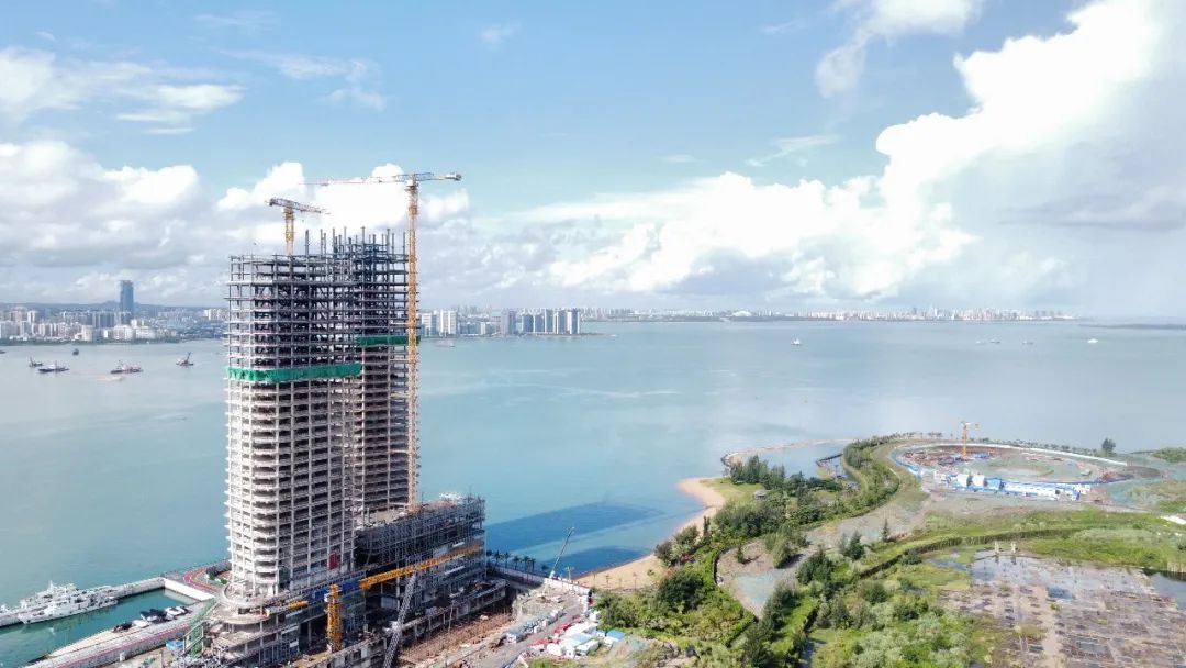 海口首个全钢结构项目——中建八局华彩·海口湾广场项目主体结构全面封顶