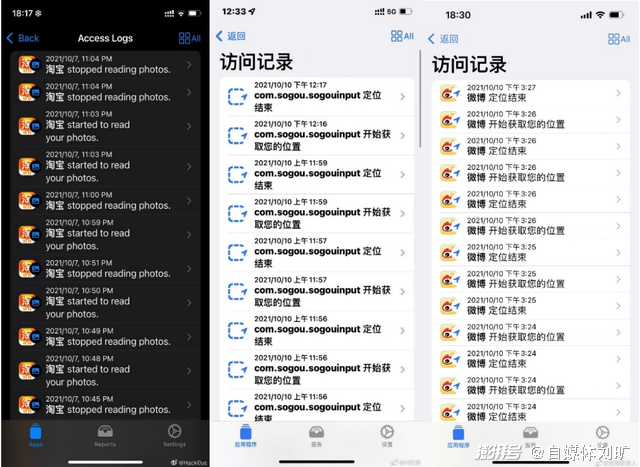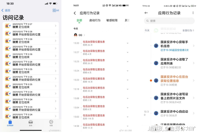 例如,有网友截图发现,淘宝App、微信、QQ、微博、搜狗输入法甚至国家反诈中心,都在后台进行了反复定位。