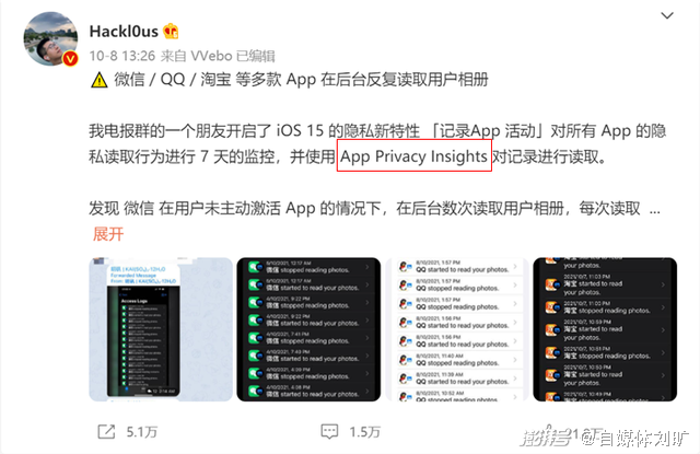 而前一天,在同样的路径下,有网友发现微信在后台多次读取用户相册。