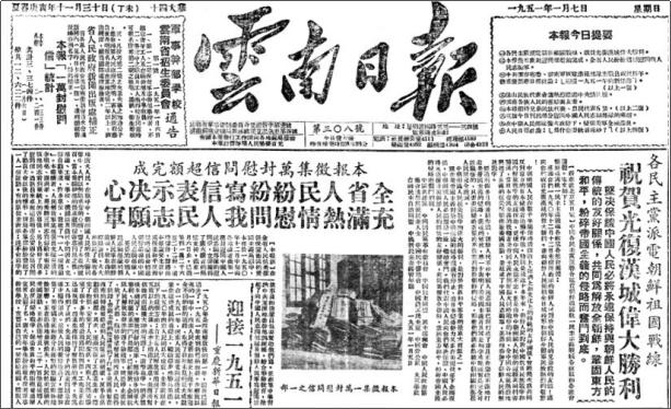 1951 年 1 月 7 日,《云南日报》刊载《本报征集万封慰问信超额完成,全省人民纷纷写信表示决心,充满热情慰问我 人民志愿军》的报道