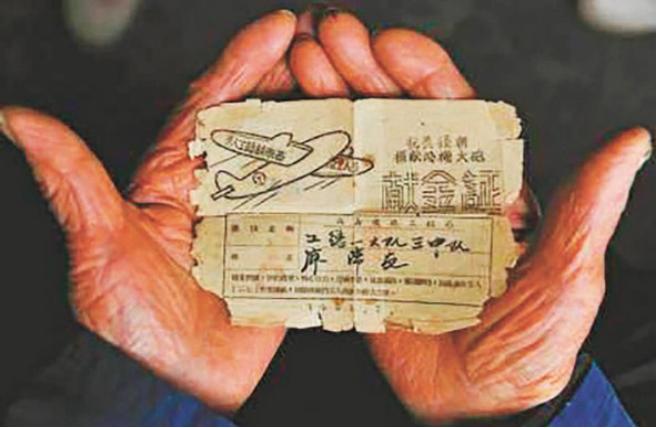 邻水县廖弟友保存的1951年抗美援朝捐献飞机大炮献金证
