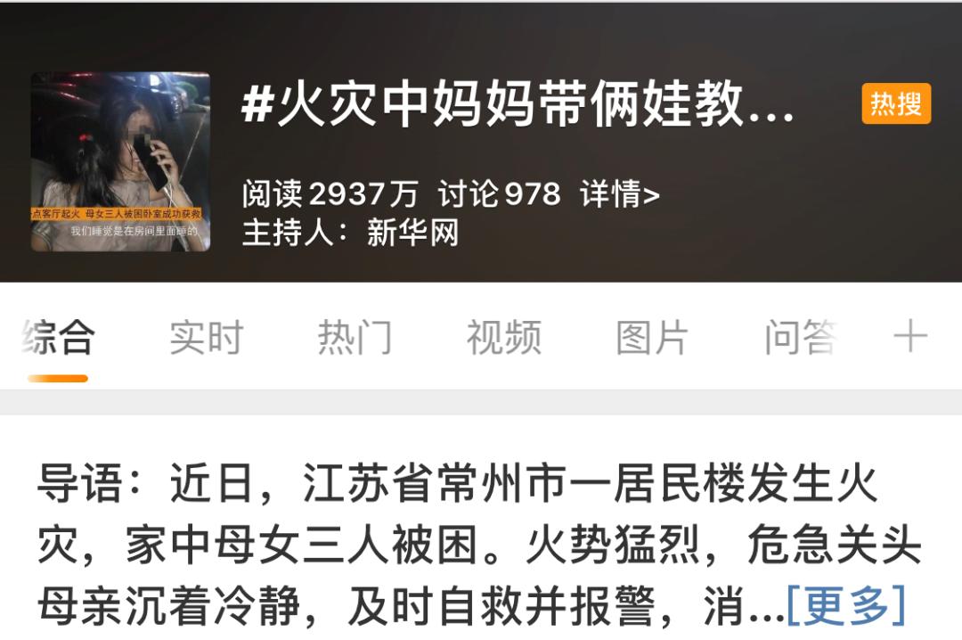 #火灾中妈妈带俩娃教科书式自救#