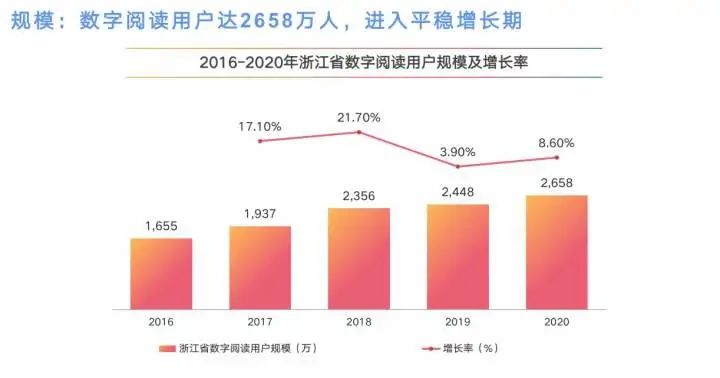 2020年,浙江省数字阅读市场营收规模达37.17亿,约占全国市场的10.6%。