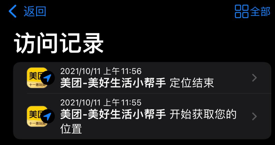 红星资本局记者通过iPhone自带的“记录APP活动”功能,监测了数小时内部分APP活动。访问记录显示,在没有使用的情况下,美团获取了定位。
