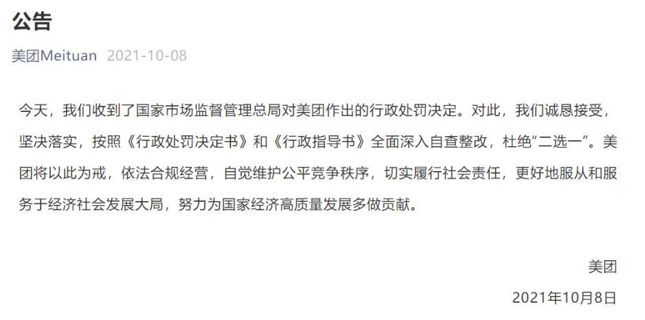 美团方面随后表示,诚恳接受,贯彻落实,深入自查整改。