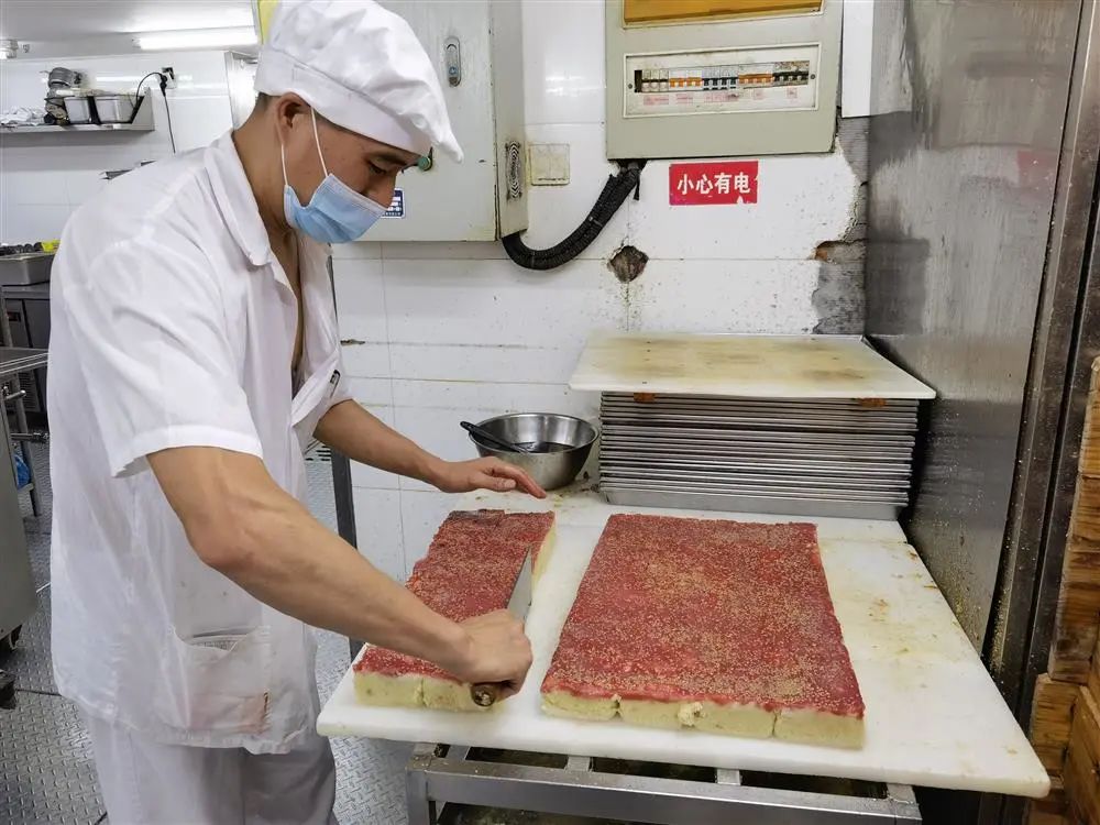 “敬老爱老的传统被传承并发展,从一块糕里就能看出变化。” 沈国兴是素有“上海糕团大王”之称的老字号沈大成糕点部第三代传人,从国庆假期开始,就带领徒子徒孙制作今年的重阳糕。红彤彤的重阳糕上洒满芝麻,消费者拿到手时,还是热乎乎的。
