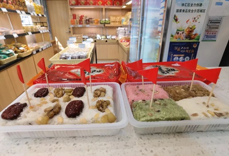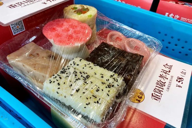 值得一提的是,如今重阳糕的颜色越来越丰富。比如,王家沙推出了重阳糕组合款,红色的红团、棕色的枣泥糕、黄色的黄松糕、白色的芝麻糕与彩色的松糕摆在一起,看着就让人胃口大开。