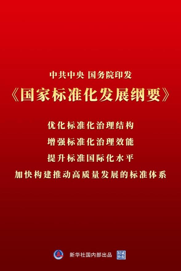 近日,中共中央、国务院印发了《国家标准化发展纲要》,并发出通知,要求各地区各部门结合实际认真贯彻落实。